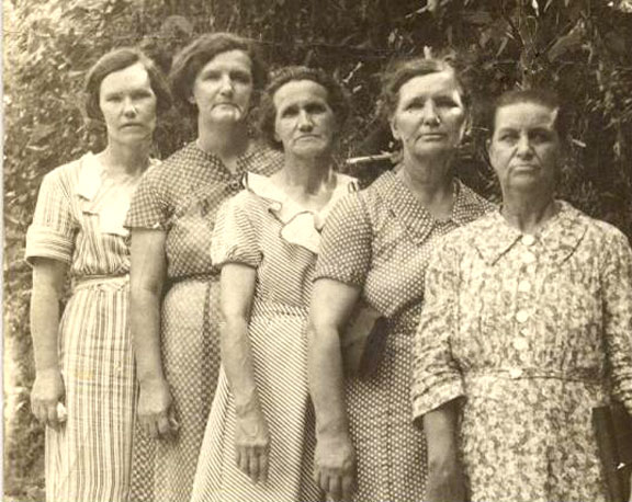 Alva May Hunt Logsdon (grandmother of Karen Logsdon Phillips) and her sisters Dell Hunt Lee, Nell Hunt Sells, Lizzy Hunt Holton and Mary Hunt Morrison